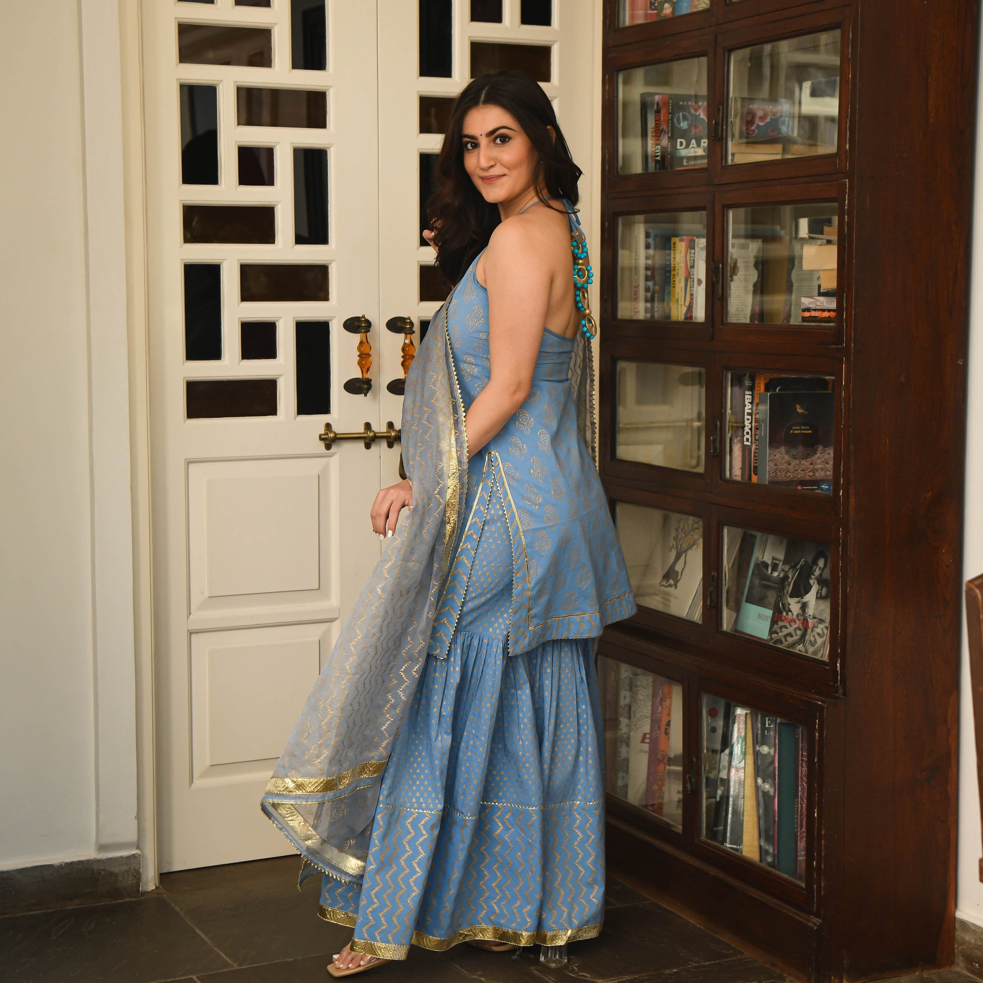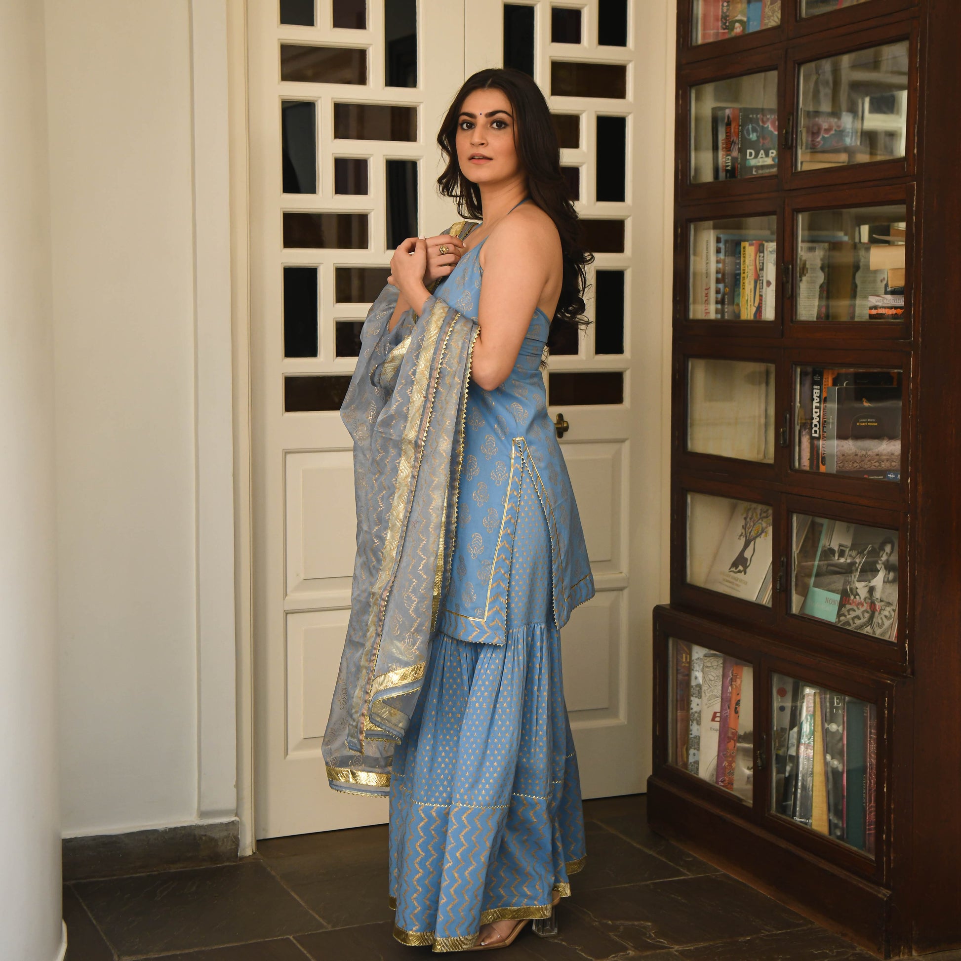 Rekindle your inner elegance by wearing our beautiful Niladri Gold Suit Set. Crafted with Cotton and bright shades, this suit set is an ode to ethnic charm. With a trendy kurta and stylishly flared bottom, it will keep you comfily chic.