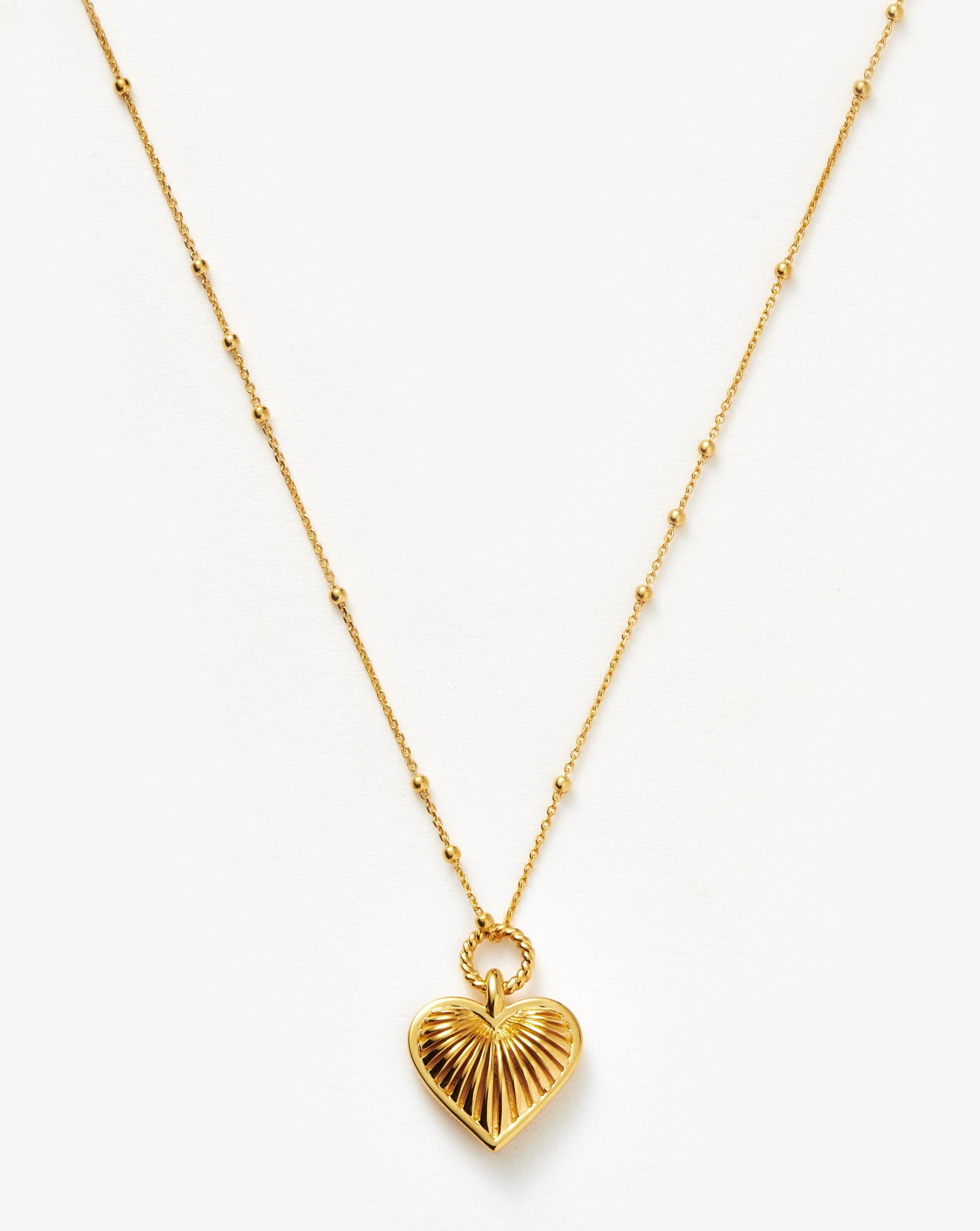 Ridge Heart Charm Pendant Necklace | 18ct Gold Plated